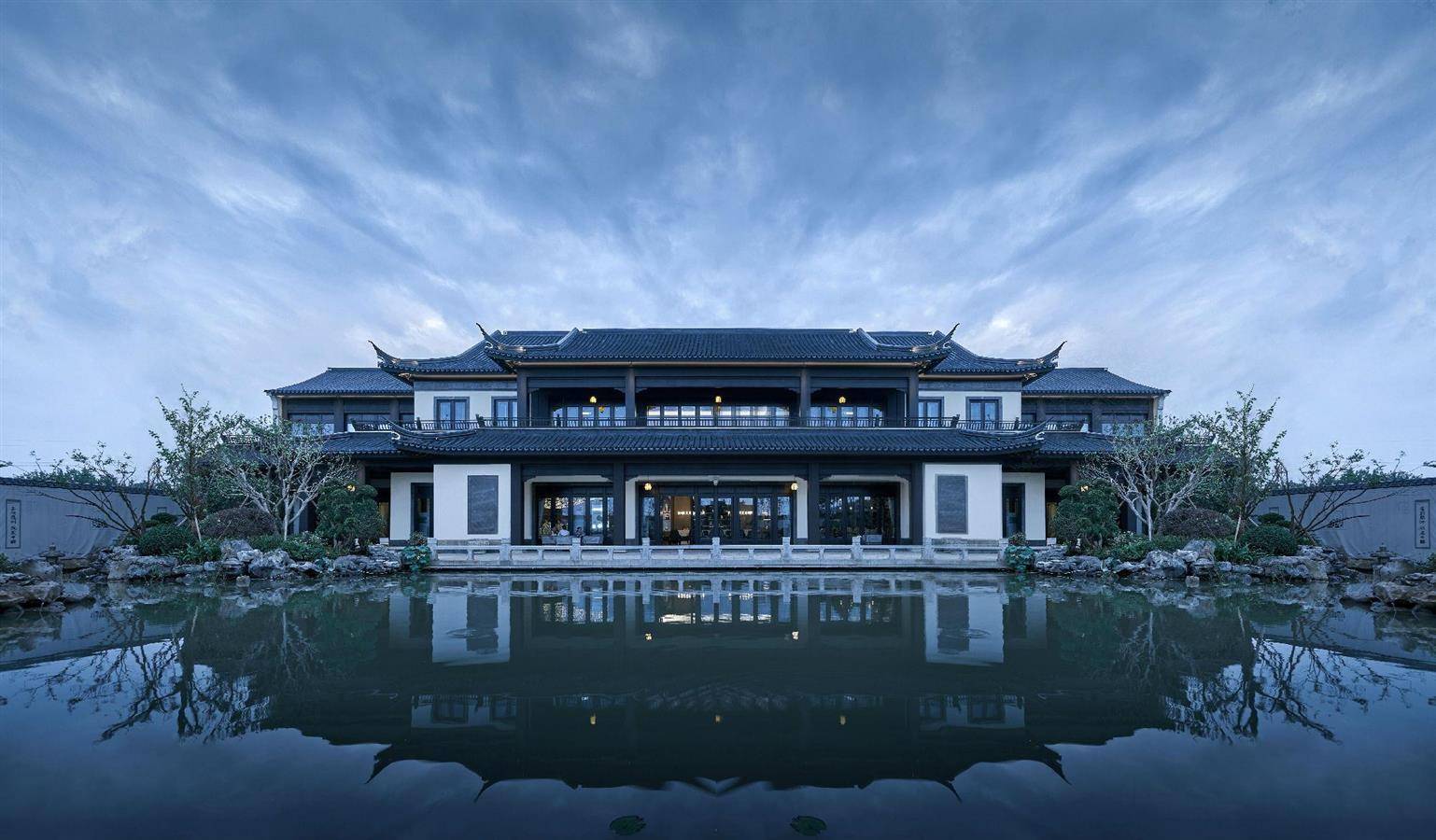 在日益西化的生活方式与生活节奏下,中国传统的居住理念,重拾对场地的人文关怀、再现对空间的美学诉求,人们凝聚于此,念兹在兹。这里既有精神生活的从容余裕,也有情感生活的亲密丰沛。“天人合一”的东方哲学孕育了中式居住的建筑规制与布局形态,开启人与自然、人与人以及人与精神世界的思考。